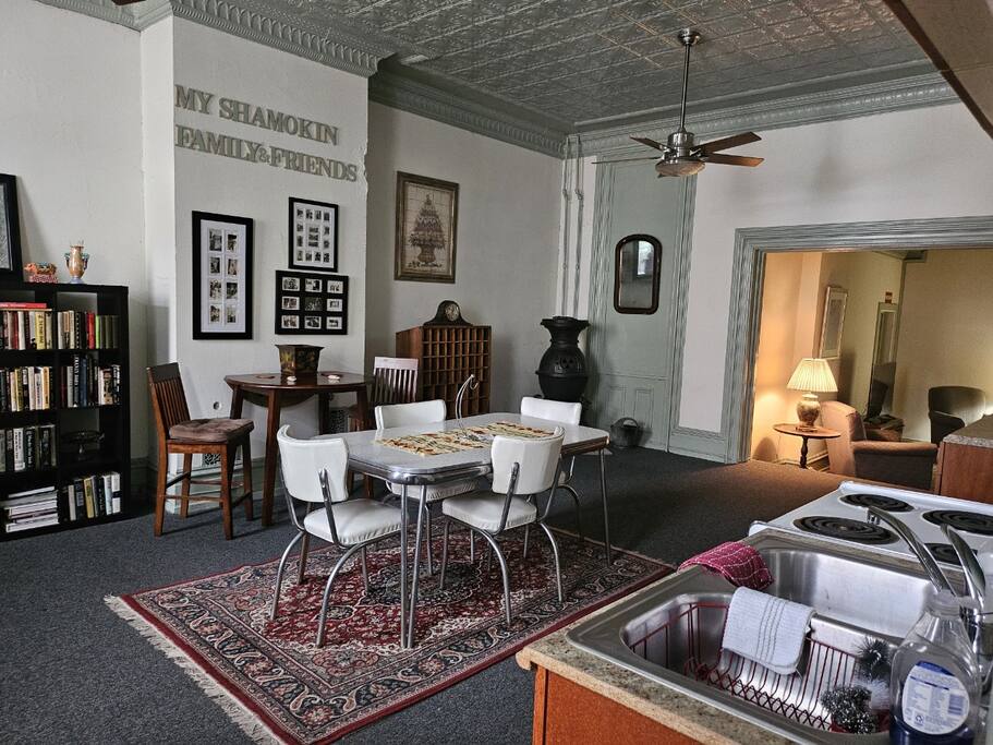 Step into a beautifully preserved historic home in the heart of Shamokin, where charm, comfort, and hospitality create a truly memorable stay. You will have a fully equipped 2-bedroom Apt in Shamokin, featuring a king bed, a queen bed, a sofa bed, a complete kitchen, fast Wi-Fi, a smart TV, and free street parking. It's ideal for families, professionals, and long-term stays. Enjoy comfort, convenience, and complete privacy in a peaceful neighborhood. This vintage gem can hold up to 6 guests.